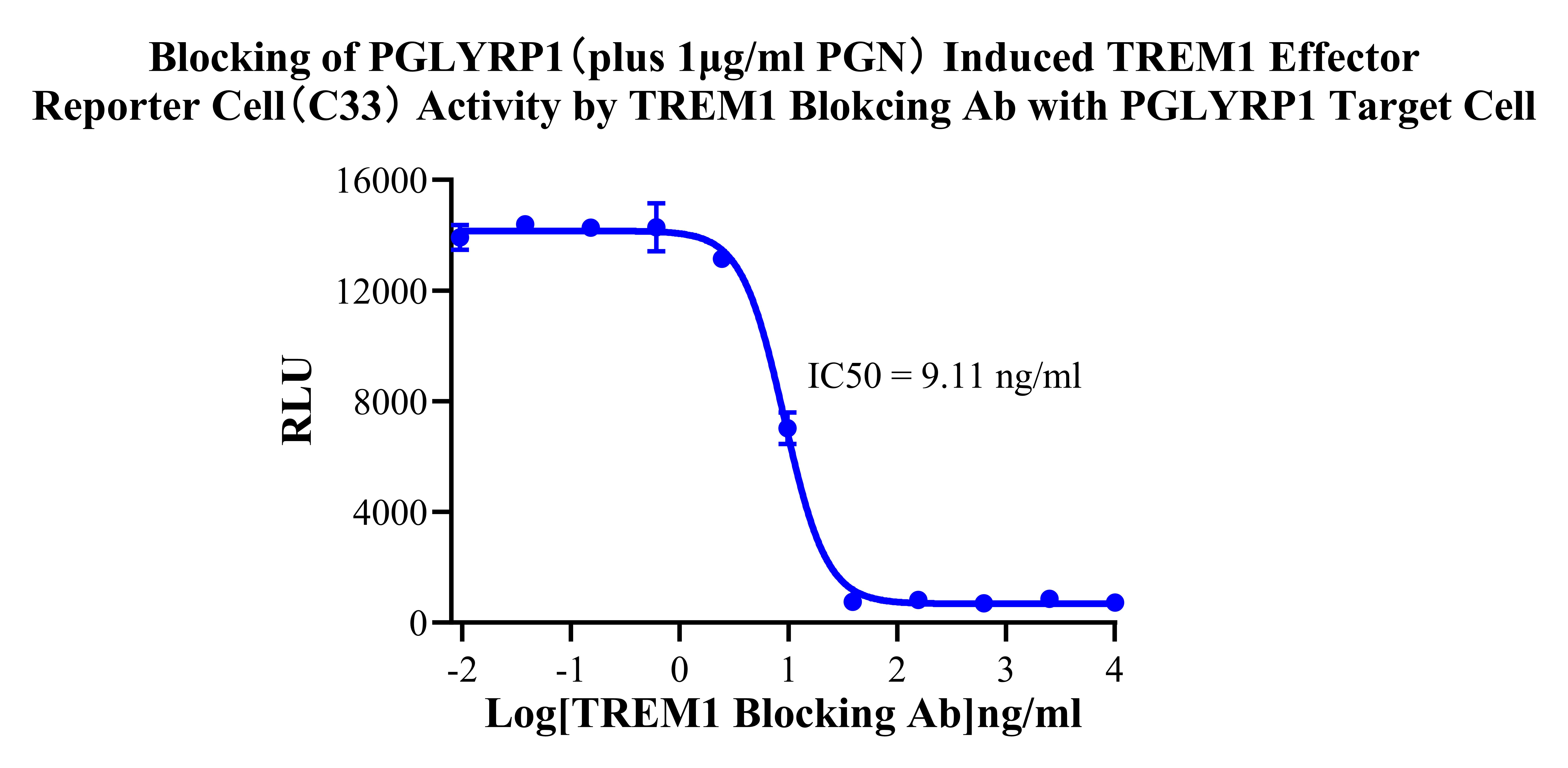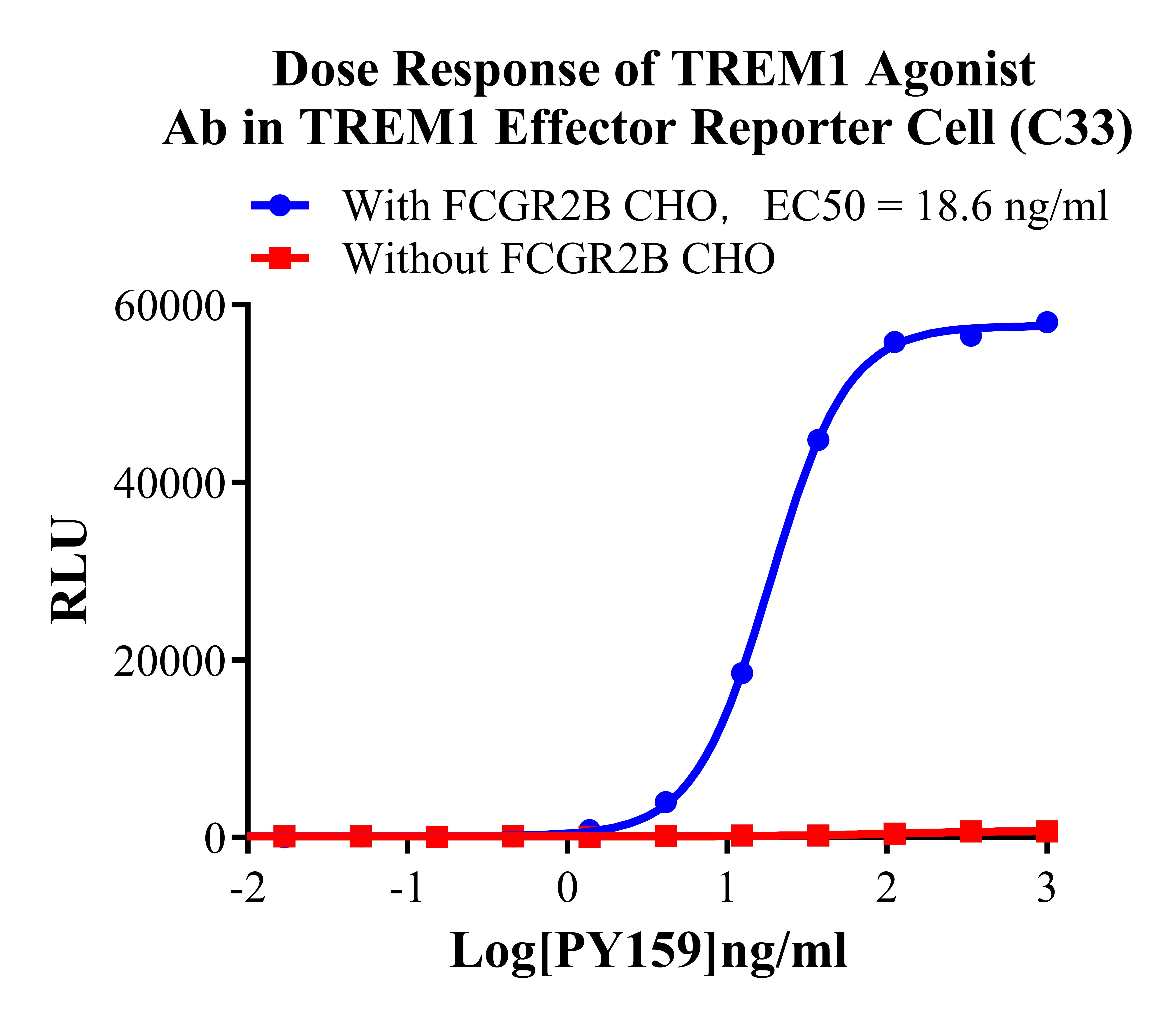 Figure 3. Dose Response of TREM1 Agonist Ab in TREM1 Effector Reporter Cells (C33). |