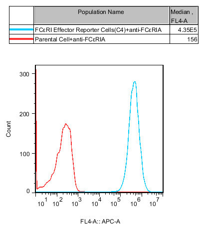 IV. Representative Data![]() Figure 2. Recombinant FcεRI Effector Reporter Cell stably expressing FcεRIA. ![]() Figure 3. Dose Response of Human IgE in FcεRI Effector Reporter Cell(C4). ![]() Figure 4. Inhibition of Human IgE-induced Reporter Activity by Human IgE Neutralization Ab in FcεRI Effector Reporter Cell(C4). |