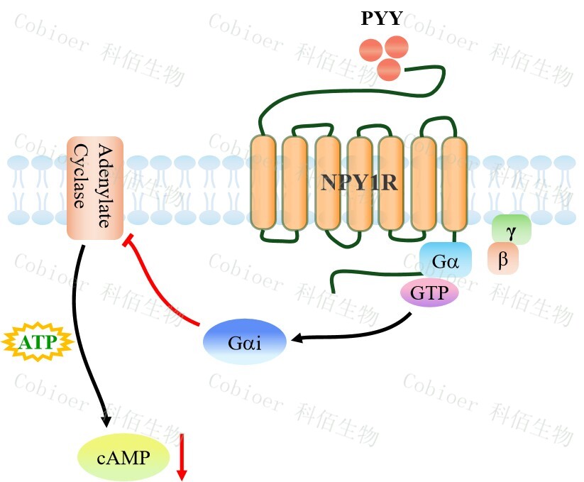 神經(jīng)肽 Y(NPY)作為一種重要的神經(jīng)遞質(zhì),廣泛分布于脊椎動物的中樞神經(jīng)系統(tǒng)和 周圍神經(jīng)系統(tǒng)。通過與不同的亞型受體結(jié)合,NPY 激活信號轉(zhuǎn)導(dǎo)通路,從而調(diào)節(jié)攝食 、能 量平衡、焦慮、晝夜節(jié)律和其他生理過程。NPY 受體(NPYR)屬于 G 蛋白偶聯(lián)受體家族, 目前在哺乳動物中已鑒定出 5 種受體基因亞型,即 NPY1R、NPY2R、NPY4R、NPY5R 和 NPY6R。 NPY1R 是 NPY 和 PYY 的受體,在多種生理過程中發(fā)揮作用,例如食欲、體重調(diào)節(jié)和 胰島素敏感性。 | |