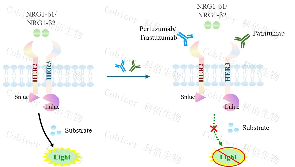 ERBB2&ERBB3 Dimerization CHO 報告基因藥靶模型很好的模擬了體內 ERBB2&ERBB3 的信號轉導過程,原理見圖所示。![]() Figure 1. ERBB2&ERBB3 Dimerization CHO 細胞模型原理圖 |