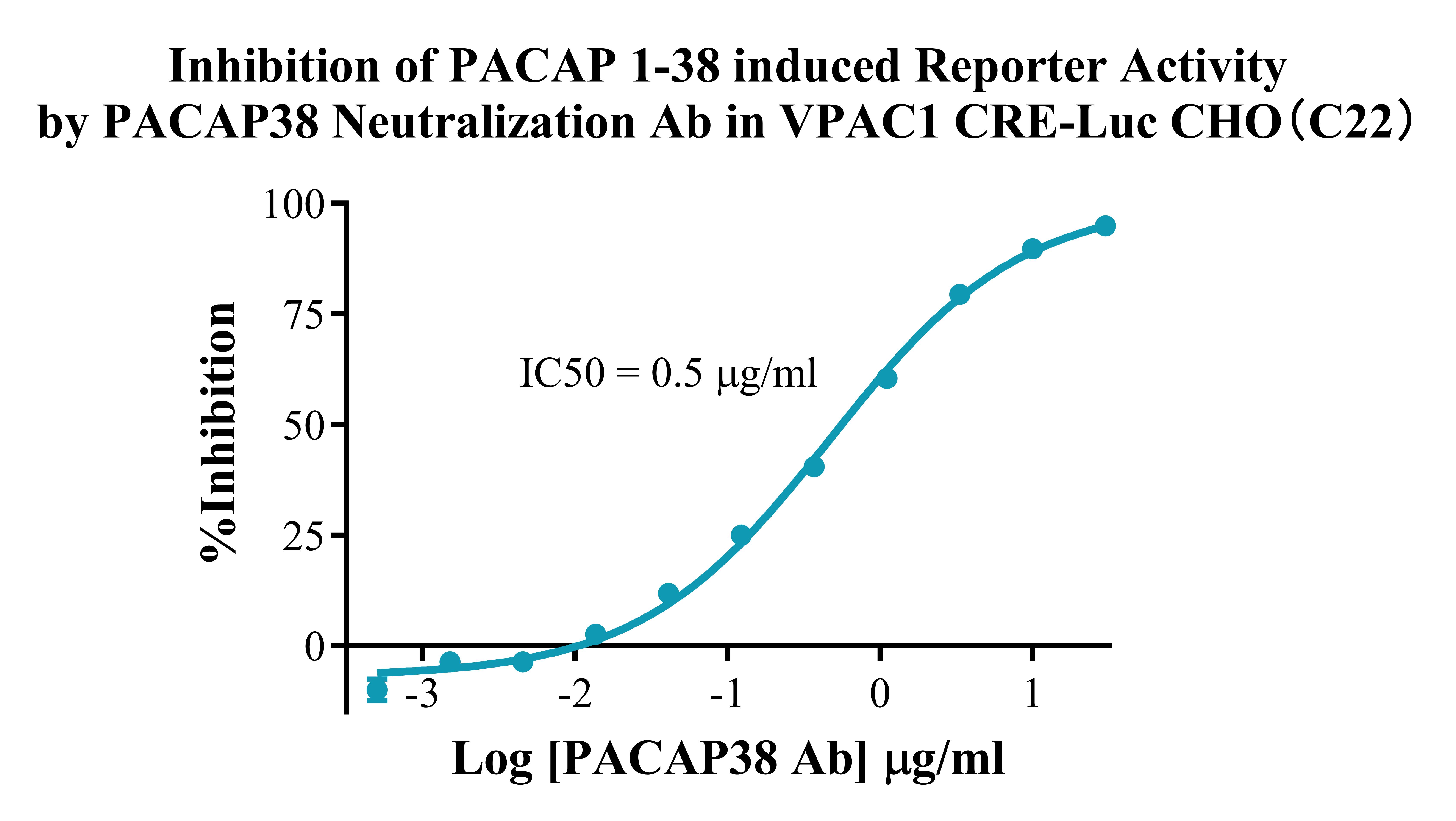 V. Representative Data![]() Figure 1. Recombinant VPAC1 CRE-Luc CHO stably expressing VPAC1. ![]() Figure 2. Dose Response of Agonists in VPAC1 CRE-Luc CHO(C22). ![]() Figure 3.Inhibition of PACAP 1-38 induced Reporter Activity by PACAP38 Neutralization Ab in VPAC1 CRE-Luc CHO(C22). |