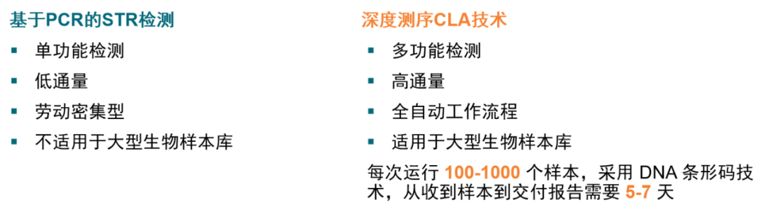下表比較了用于細(xì)胞系認(rèn)證的深度測(cè)序CLA和基于PCR的STR檢測(cè):