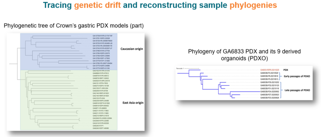 樣本溯源:構(gòu)建PDX模型系統(tǒng)發(fā)育樹。